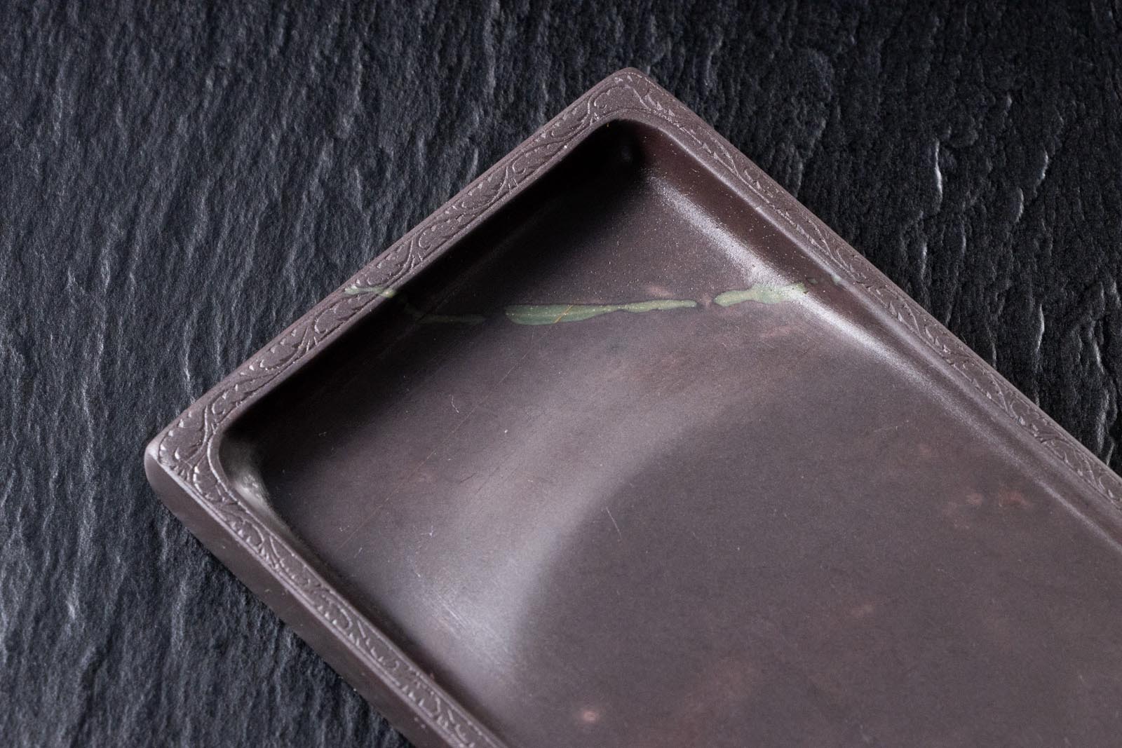 端渓老坑薄型廻紋方池硯