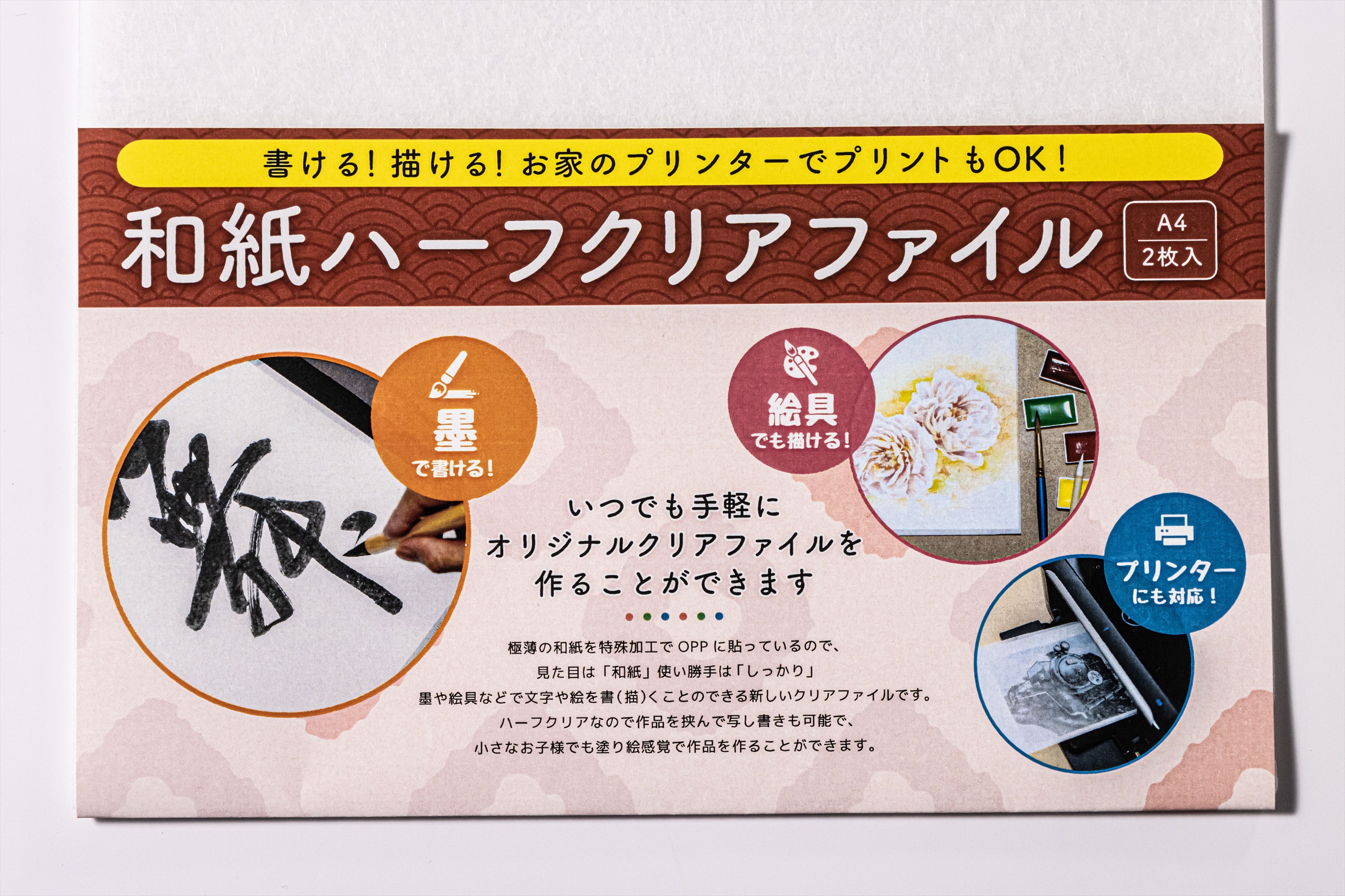 墨、絵の具などで絵、文字を書いてオリジナルクリアファイルを作れます